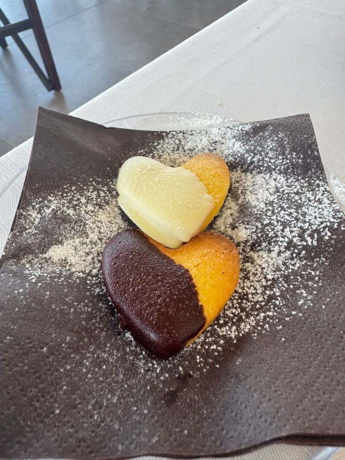 Mio marito ha preso uno spaghetto allo scoglio, il cameriere gli ha consigliato di prenderlo anche lui senza glutine così avrei potuto assaggiarlo anche e io e dicendo che non avrebbe percepito differenza con la pasta normale e così è stato. Questo spaghetto vince sull’altro senza ombra di dubbio. Forse perché la pasta la fanno loro in casa ed è veramente eccezionale. E alla fine ci hanno portato con il caffè due biscottini senza glutine, credo fossero fatti con la farina di mais e la farina di riso e con la copertura al cioccolato.