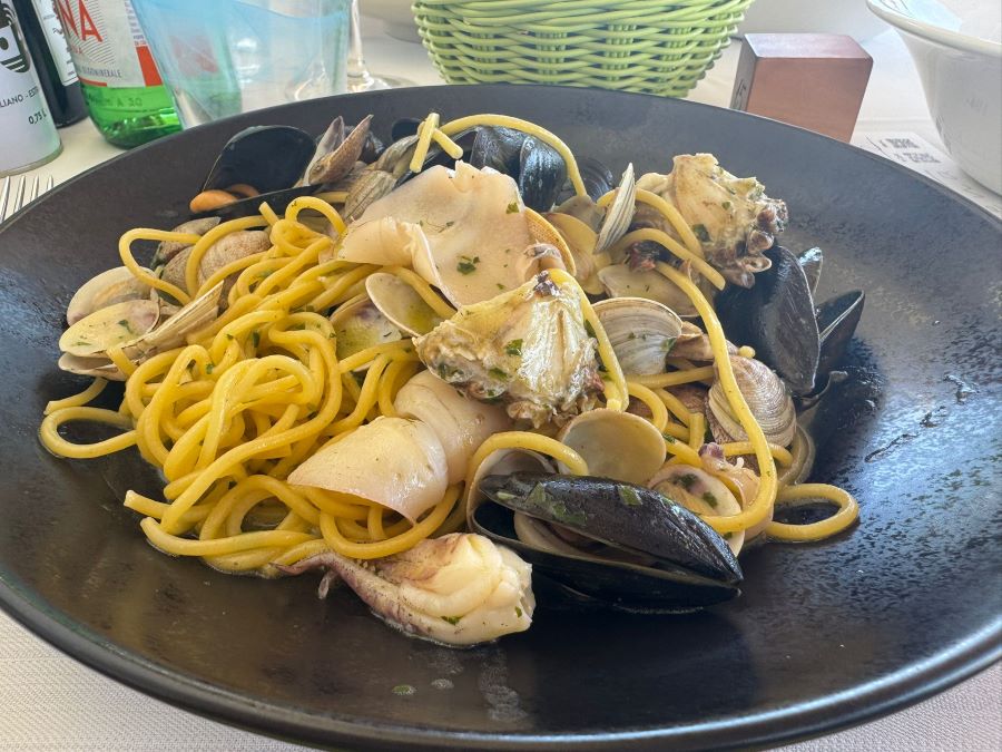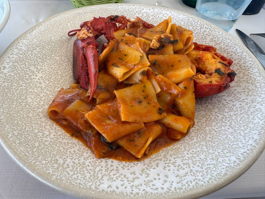 Ho mangiato dei paccheri all’astice che erano deliziosi, ho preso anche un antipasto anche quello molto buono, quindi ve lo straconsiglio, veramente buono
