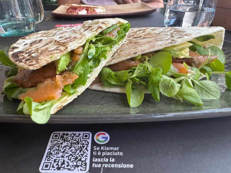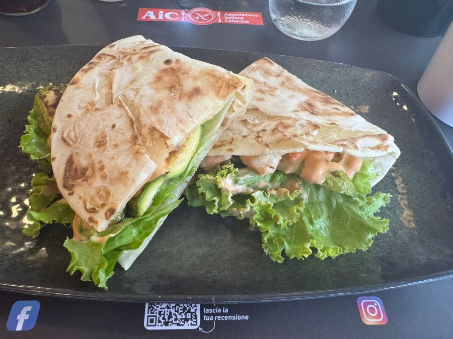 Stanno veramente attenti a tutto, addirittura l’altro giorno la ragazza ha portato prima la piadina a mio marito e io ho preso il suo piatto me lo sono messa davanti per fare la foto e la ragazza è arrivata di corsa, dicendo “No, no, non è tuo questo”. Quindi super attente.