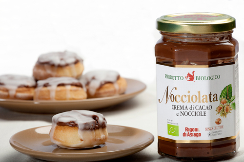 – 250 g di farina 00 – 3 tuorli d’uovo – un cucchiaino di lievito per dolci – 50 g di zucchero – 100 ml di latte – 1 tazza di zucchero a velo – poche gocce di succo di limone – ¼ di barattolo Nocciolata Rigoni di Asiago