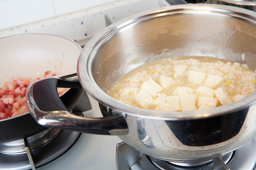 Quindi ecco il Risotto con taleggio, miele di castagno e pancetta.