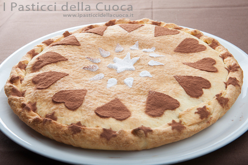 In forno a 180° per circa 40 minuti. Una volta fredda la potete decorare con zucchero a velo o cacao amaro o con tutti e 2.
