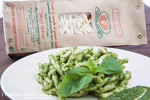 Ora che il pesto è pronto non resta che cuocere la pasta, io ho utilizzato delle Treccine Rustichella d’Abruzzo (N.B. Non collaboro con loro e questa non è pubblicità), non conoscevo questa pasta, ne ho sentito parlare nelle community di Google plus, “I migliori blog di cucina” di cui faccio parte e sono rimasta colpita dalla qualità e dai formati interessanti, per di più dalla loro pagina di Facebook hanno invitato i food blogger a proporre ricette che avrebbero pubblicato sulle loro pagine, quindi ho pensato fosse una buona occasione per far crescere un po’ questo blog e in più la pasta è proprio buona.